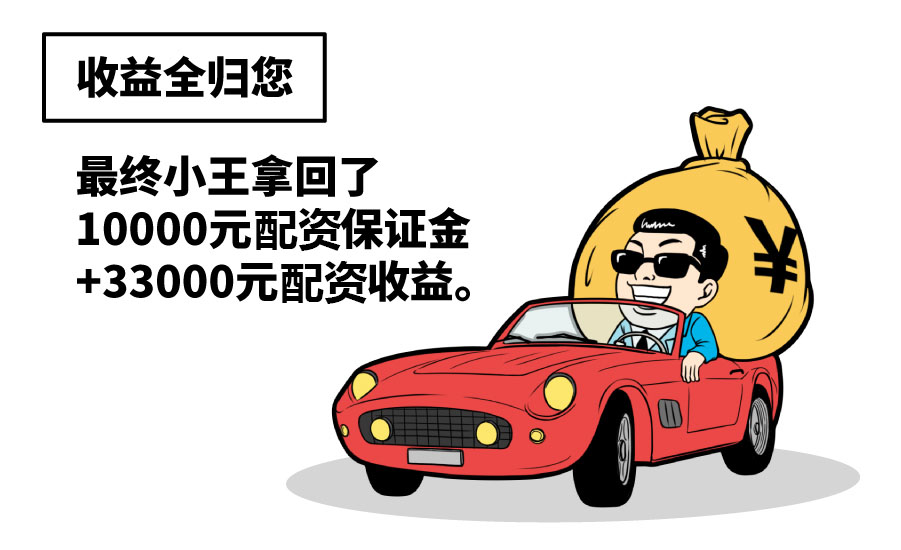 例如您申请了100万元配资资金,预存10万元保证金,共110万元资金由您配资。当您的股票涨了一倍后,如果结束此次配资,您就可以拿回10万元保证金和盈利的110万元利润,共获得120万元。